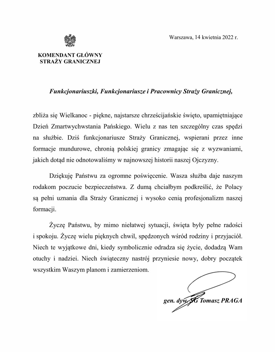 Życzenia Komendanta Głównego Straży Granicznej - Aktualności