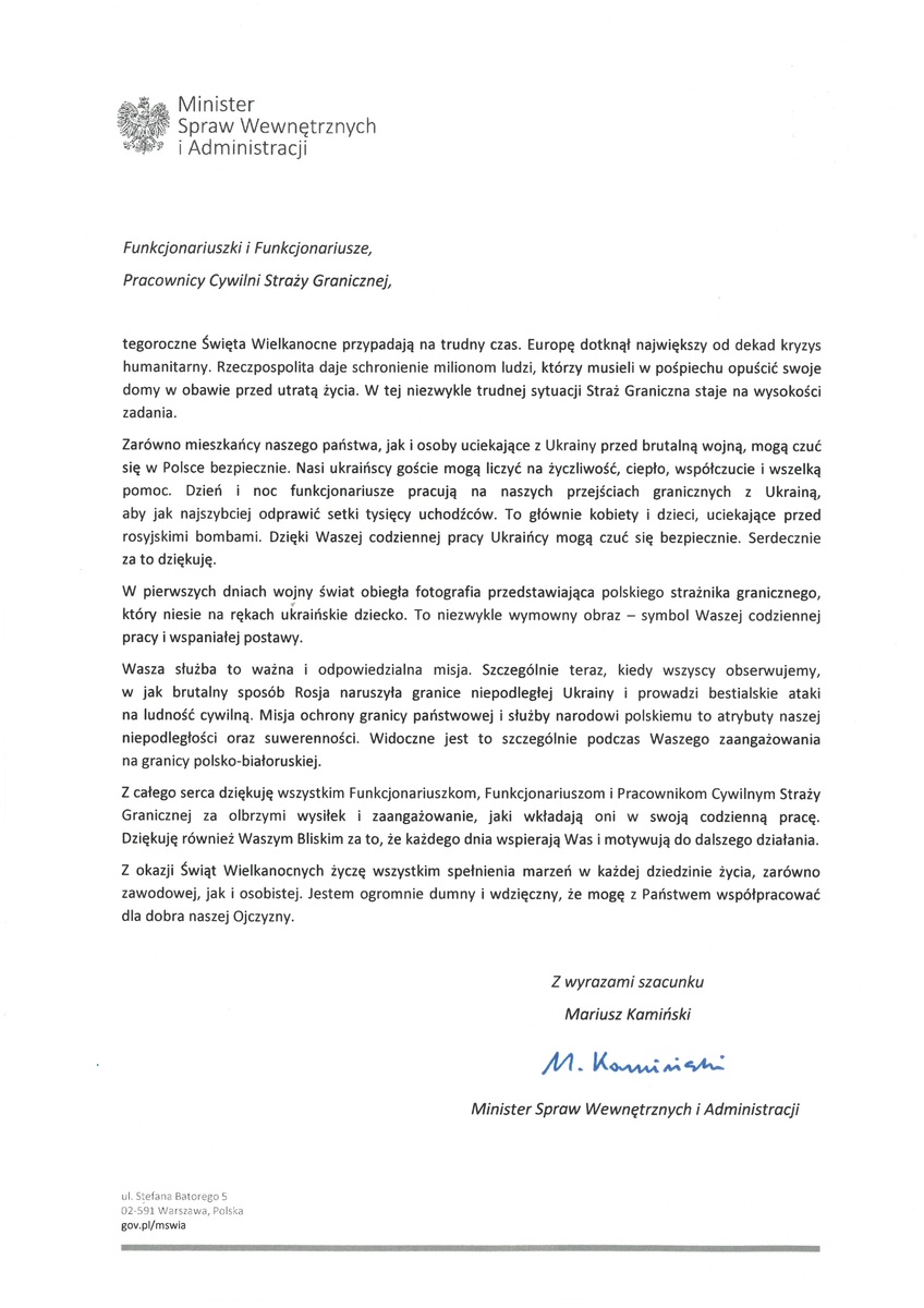 Życzenia Ministra Spraw Wewnętrznych i Administracji