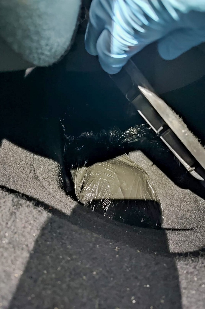 Funkcjonariusze ustalają, gdzie miały trafić narkotyki, które ukryte były w schowkach pod wycieraczkami za przednimi siedzeniami auta, w bagażniku samochodu, w oponie koła zapasowego oraz w specjalnej skrytce przewożonego fotela. Podczas dalszych działań w mieszkaniu zatrzymanego policjanci znaleźli również marihuanę, a także zgrzewarkę, wagę elektroniczną, różnej wielkości woreczki strunowe, dwa 10-litrowe pojemniki z 95% kwasem siarkowym i 5 litrów 96% alkoholu etylowego. Wszystko zostało zabezpieczone i stanowi obecnie materiał dowodowy w sprawie.