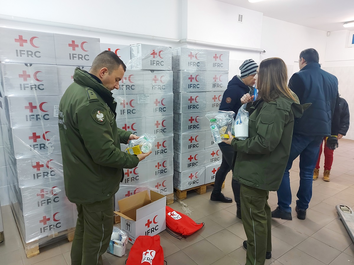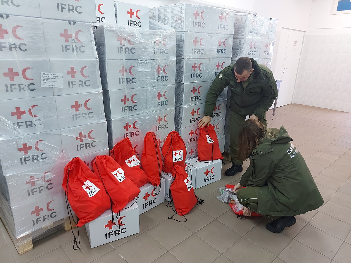 W ramach podpisanego porozumienia z Podlaskim Oddziałem Straży Granicznej i Stowarzyszeniem Łączy nas granica, Polski Czerwony Krzyż przekazał w czwartek (08.12.2022 r.) 7 palet z pakietami żywieniowymi i higienicznymi. To już kolejna dostawa artykułów przekazana przez Polski Czerwony Krzyż, które trafią do placówek Podlaskiego Oddziału Straży Granicznej, a następnie zostaną przekazane potrzebującym cudzoziemcom.