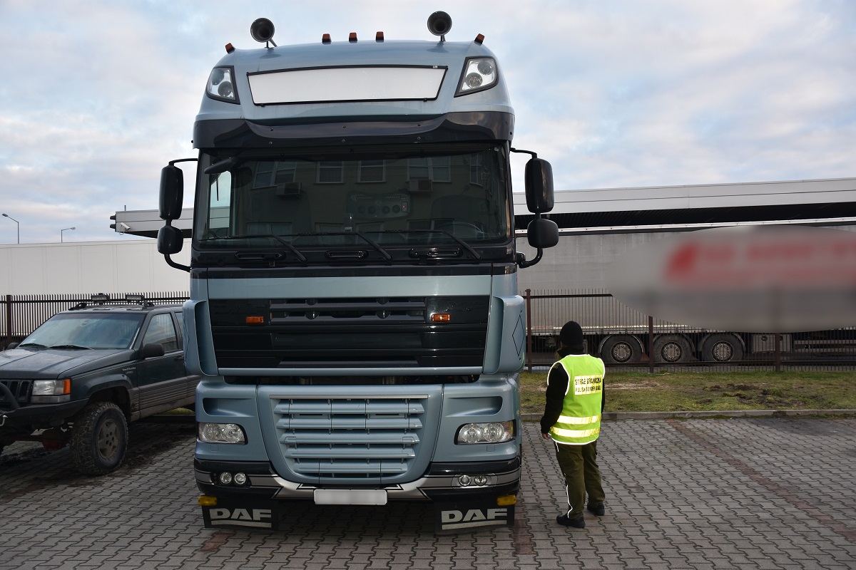 Kolejnego dnia, tym razem służba Placówki SG w Dorohusku, na terenie drogowego przejścia granicznego, na kierunku wyjazdowym z Polski, przerwała podróż 56-letniego obywatela Ukrainy. Mężczyzna próbował opuścić terytorium RP samochodem ciężarowym marki DAF (rok prod. 2013) o szacunkowej wartości 90 tys. zł. Kontrola legalności pochodzenia pojazdu wykazała, iż jego tabliczka znamionowa nie jest oryginalna. Mundurowi stwierdzili również uzasadnione podejrzenie ingerencji w pole numeryczne VIN.