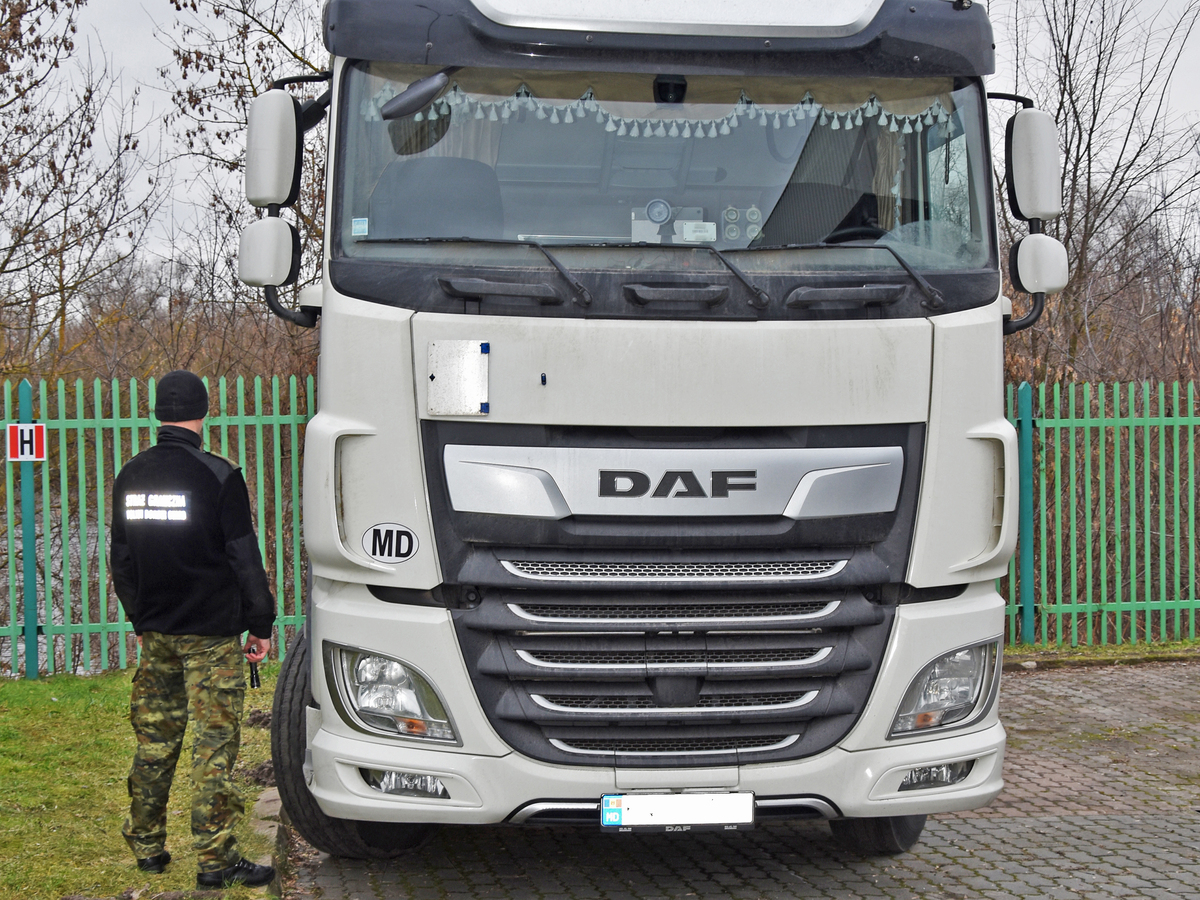 26 stycznia br., na terenie drogowego przejścia granicznego w Kukurykach, na kierunku wjazdowym do Polski, funkcjonariusze NOSG z placówki w Terespolu przerwali podróż 33-letniemu obywatelowi Mołdawii. Mundurowi zakwestionowali legalność pochodzenia ciągnika siodłowego DAF (rok prod. 2017), wchodzącego w skład zestawu ciężarowego z naczepą. Podczas szczegółowej kontroli funkcjonariusze ujawnili ingerencję w pole numeryczne VIN. Wartość zabezpieczonego pojazdu oszacowano na kwotę 200 tys. zł.