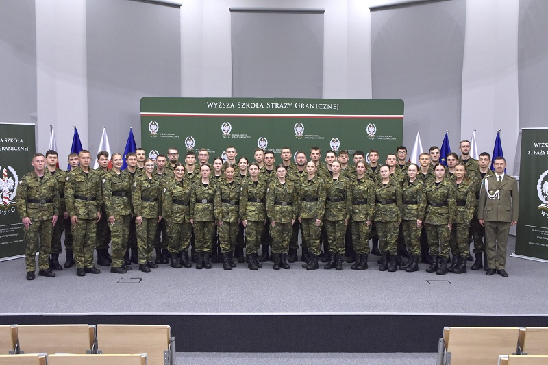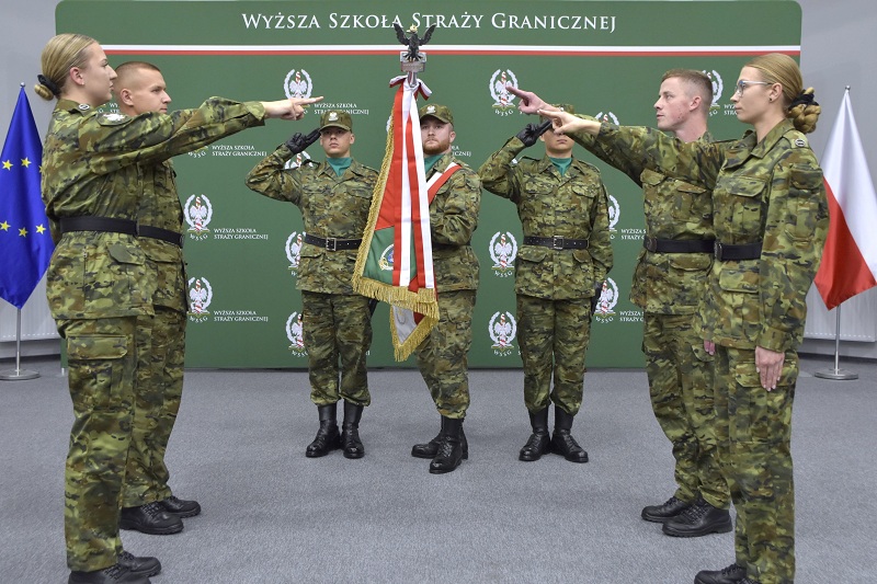 Nowo przyjęci studenci złożyli akt ślubowania na sztandar Wyższej Szkoły Straży Granicznej i pasowano ich berłem w poczet społeczności akademickiej.