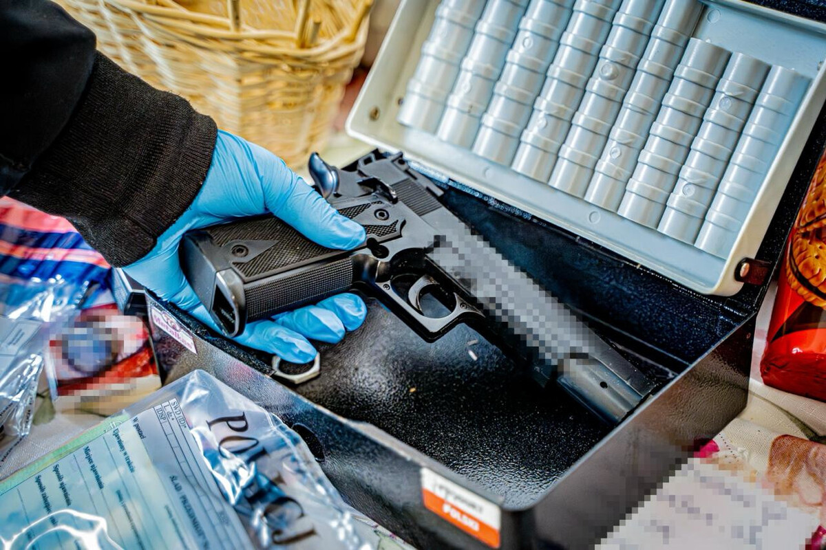 Podczas przeszukań policjanci zabezpieczyli m.in. gotówkę w kwocie prawie 13 tys. zł, narkotyki oraz przedmioty przypominające broń.