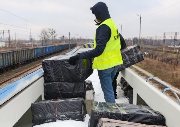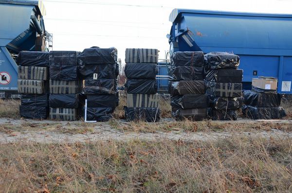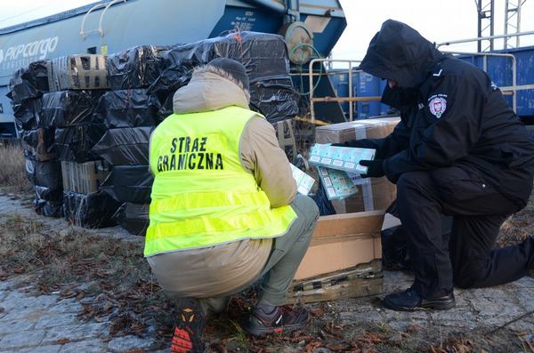 Funkcjonariusze skontrolowali pociąg towarowy, który przyjechał do Białegostoku z Białorusi. Podczas sprawdzania wagonów okazało się, że w jednym z nich pośród deklarowanego sypkiego nawozu sztucznego znajdują się także czarne foliowe worki z papierosami.