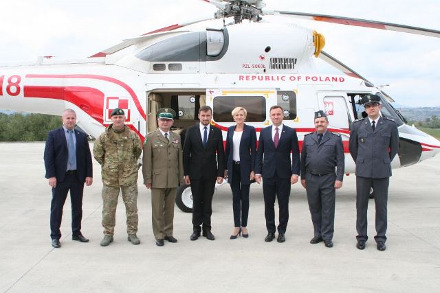 Na lądowisku Straży Granicznej w Nowym Sączu–Biegonicach Komendant Ośrodka płk SG Mieczysław Kurek witał Pana Prezydenta RP Andrzeja Dudę, któremu bezpieczeństwo wspólnie z Biurem Ochrony Rządu, zapewniali nasi funkcjonariusze.