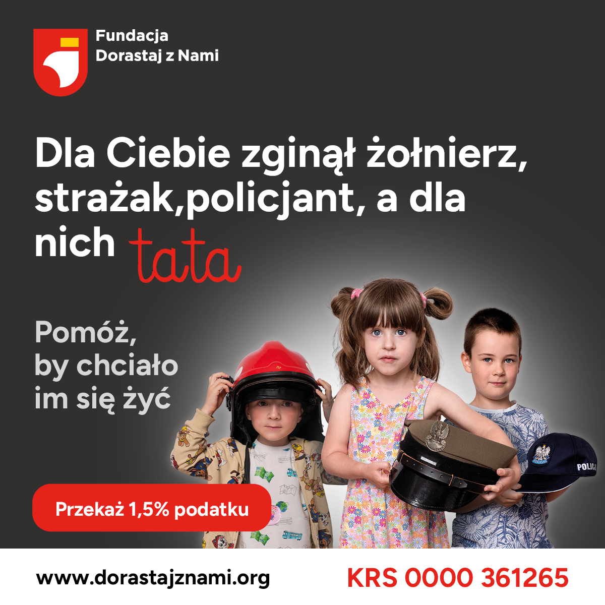 Fundacja Dorastaj z Nami od ponad dziesięciu lat wspiera rozwój i naukę dzieci, których rodzice zginęli, zmarli lub zostali poszkodowani podczas pełnienia służby. Pierwotnie podopiecznymi Fundacji były dzieci żołnierzy i funkcjonariuszy. Od niedawna zajmuje się ona także sierotami po pracownikach służby zdrowia, którzy zmarli na COVID-19. Obecnie pod opieką Fundacji jest 152 podopiecznych.