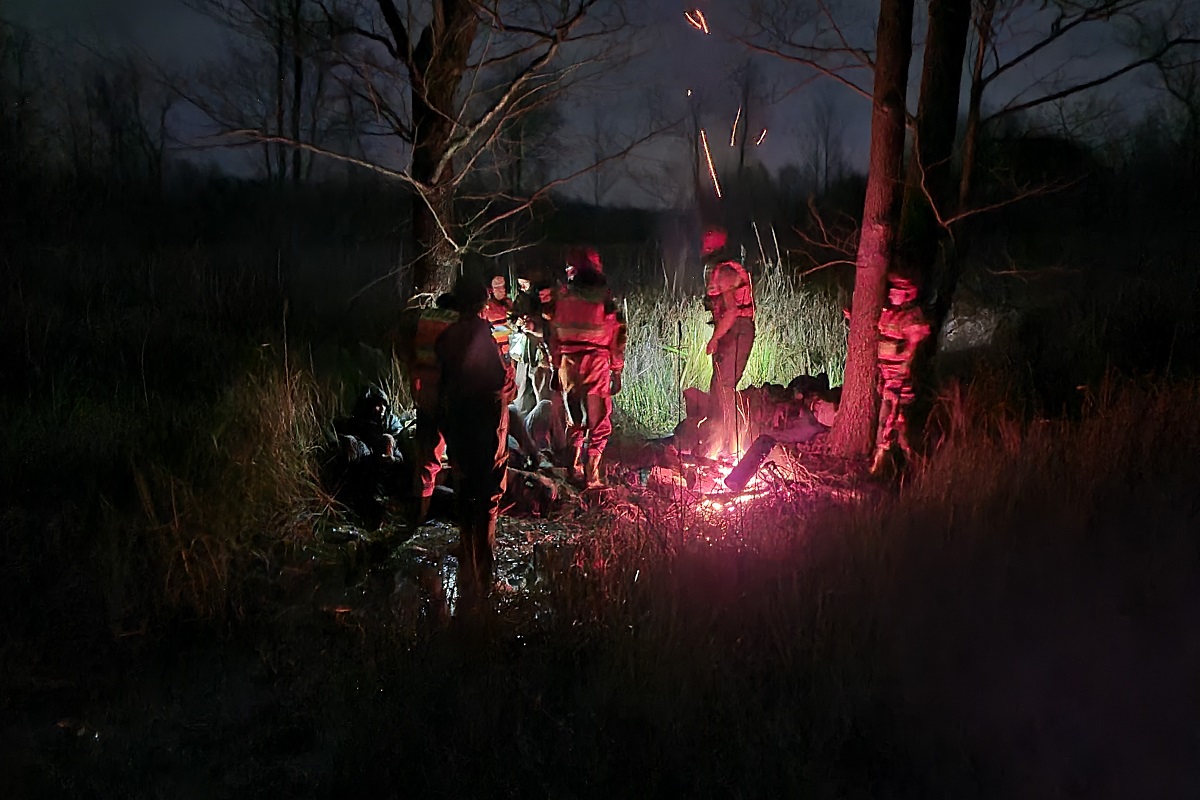 Wczoraj (7 listopada) po godz. 18.00 do dyżurnego Podlaskiego Oddziału SG wpłynęła informacja o 10 osobach, które ugrzęzły w rozlewiskach rzeki Narew. W podany rejon natychmiast skierowano patrole Straży Granicznej. Dotarcie do cudzoziemców, ze względu na bagienny teren, było bardzo utrudnione. Do działań zaangażowano żołnierzy Wojsk Obrony Terytorialnej (WOT) z Grupy Rozpoznania Obrazowego oraz jednostki Państwowej i Ochotniczej Straży Pożarnej. Poszukiwaną grupę migrantów udało się zlokalizować przy użyciu drona. Dzięki namiarom podawanym przez operatora, około godziny 23.00, dotarła do cudzoziemców grupa ratownicza (2 funkcjonariuszy Straży Granicznej i 6 Strażaków). Wszyscy, zarówno cudzoziemcy jak i funkcjonariusze, byli bardzo wycieńczeni i nie mieli możliwości bezpiecznego powrotu. Do akcji został wezwany wojskowy śmigłowiec. Na jego pokład, podczas dwukrotnego przelotu, udało się podjąć wszystkie osoby (zarówno migrantów, jak i ratowników). Na lądowisku, przygotowanym w miejscowości Siemianówka, czekały już zespoły ratownictwa medycznego. Cała akcja zakończyła się o godzinie 4.15.