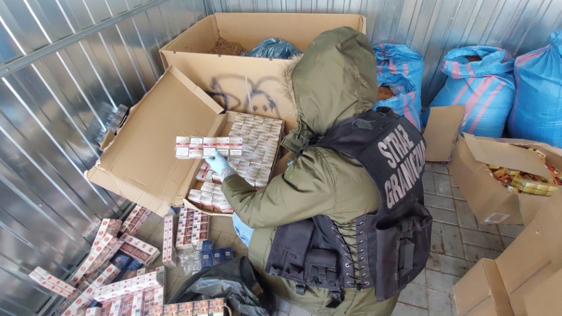 Wczoraj funkcjonariusze Straży Granicznej przyłapali w powiecie kętrzyńskim 42-latka, który wynosił z auta worek z krajanką tytoniową. Docelowo tytoń miał trafić na sklepowe półki. Okazało się również, że mieszkaniec powiatu kętrzyńskiego ma jeszcze magazyn z nielegalnym towarem. W blaszanym garażu przechowywał prawie 400 tys. sztuk papierosów różnych marek bez obowiązujących znaków skarbowych akcyzy oraz ponad 156 kg tytoniu.