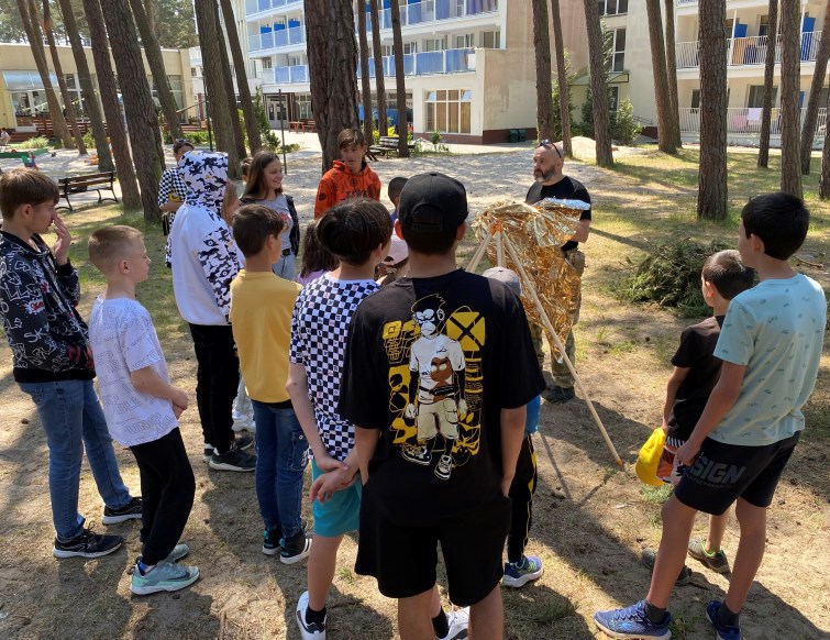 Dzieci w trakcie zajęć 1 edycji Warsztatów Survivalowych dla dzieci uchodźców wojennych z Ukrainy -