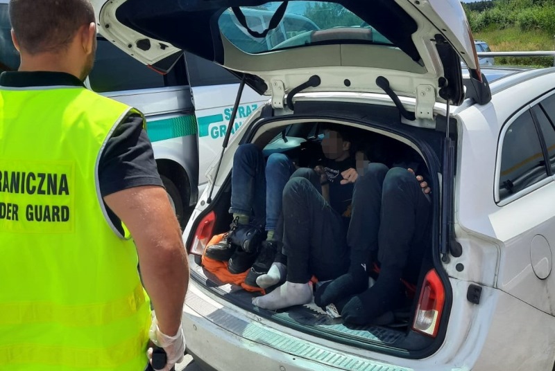 Funkcjonariusze SG, prowadzący kontrolę drogową w powiecie żarskim, zatrzymali na drodze prowadzącej do granicy z Niemcami osobowego opla, którym kierował 56-letni Słowak. Kierowca pomagał 7 obywatelom Syrii w przekroczeniu polsko-niemieckiej granicy wbrew przepisom. Okazało się bowiem, że Syryjczycy nie posiadali dokumentów uprawniających ich do pobytu w Polsce. Mieli jednak prawo pobytu na terytorium Słowacji. Cudzoziemców zatrzymano za usiłowanie przekroczenia granicy z Polski do Niemiec bez wymaganych dokumentów. Usłyszeli zarzuty, przyznali się do zarzucanych im czynów i dobrowolnie poddali karze 5 miesięcy pozbawienia wolności z warunkowym zawieszeniem jej wykonania na roczny oraz dwuletni okres próby. Wszyscy zostali przekazani służbom słowackim.