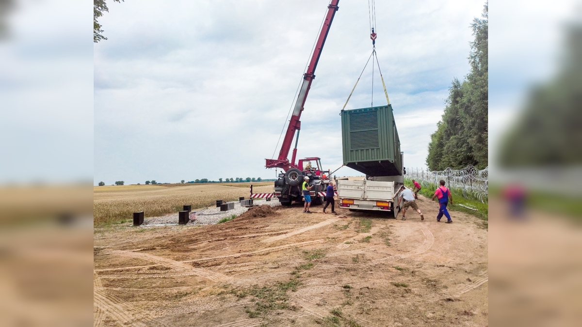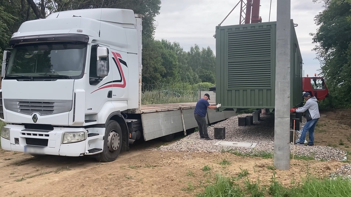Instalacja kontenerów na granicy polsko-rosyjskiej -