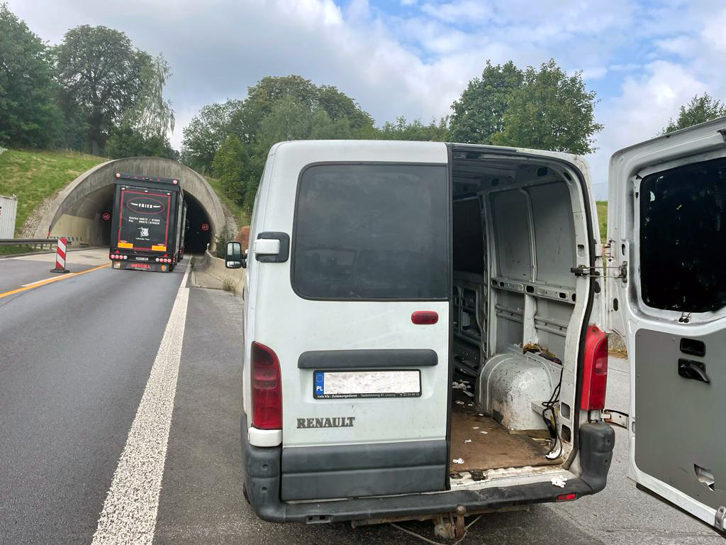 Wczoraj 16 sierpnia strażnicy graniczni ze Zgorzelca pełniąc służbę przy autostradzie A4, wytypowali i skierowali do kontroli drogowej dostawczego renaulta na polskich numerach rejestracyjnych. Kierowca pojazdu nie zastosował się do wydanych sygnałów do zatrzymania i z dużą prędkością zaczął oddalać się od funkcjonariuszy w kierunku granicy z Niemcami. Natychmiast podjęto pościg za uciekającym pojazdem. Kierowca busa lekceważył przepisy ruchu drogowego i nie zważał na stwarzanie zagrożenia innym użytkownikom drogi. Granicę przekroczył z dużą prędkością przez byłe przejście graniczne w Jędrzychowicach. Funkcjonariusze SG zdołali zatrzymać pojazd około 25 km od polsko-niemieckiej granicy. Sprawca natychmiast zbiegł do pobliskiego lasu, zostawiając w części ładunkowej pojazdu osiemnastu cudzoziemców. Czynności poszukiwawcze niezwłocznie rozpoczęli powiadomieni o zdarzeniu niemieccy policjanci z jednostki w Ludwigsdorf.