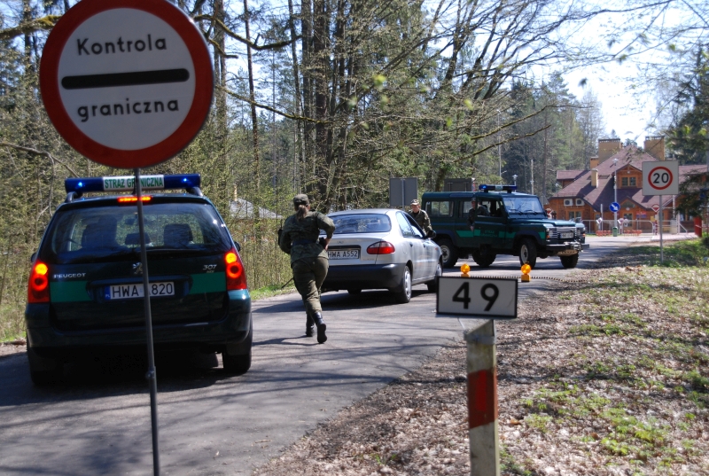 Funkcjonariusze SG w trakcie kontroli w Braniewie -