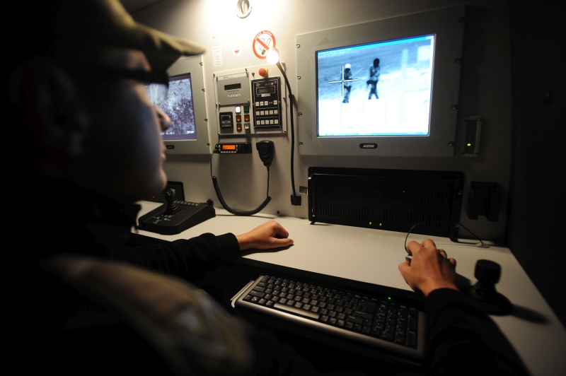 Funkcjonariusz SG podczas nocnej obserwacji -