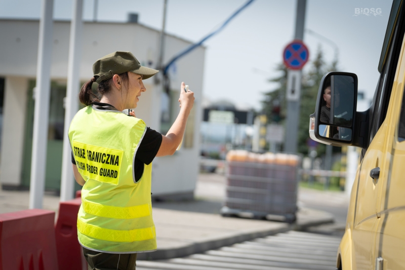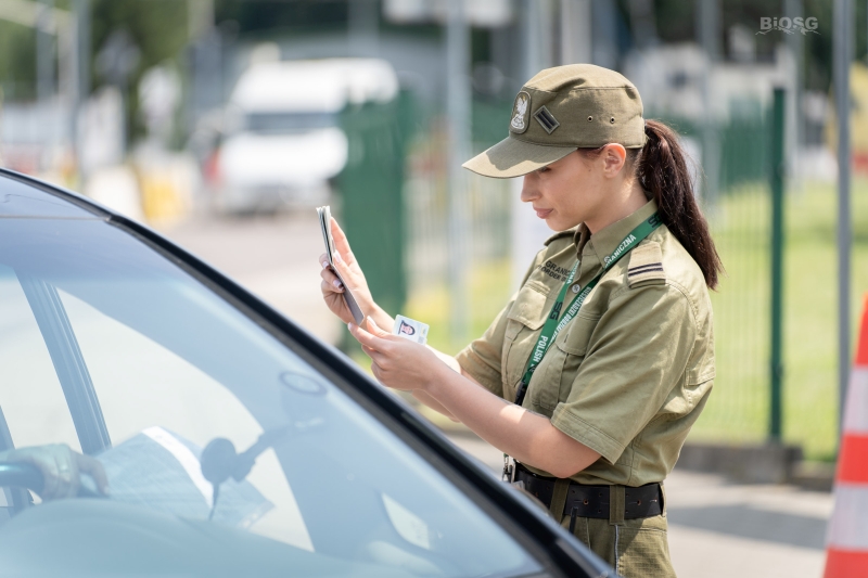 Funkcjonariuszka SG kontrolująca dokumenty -