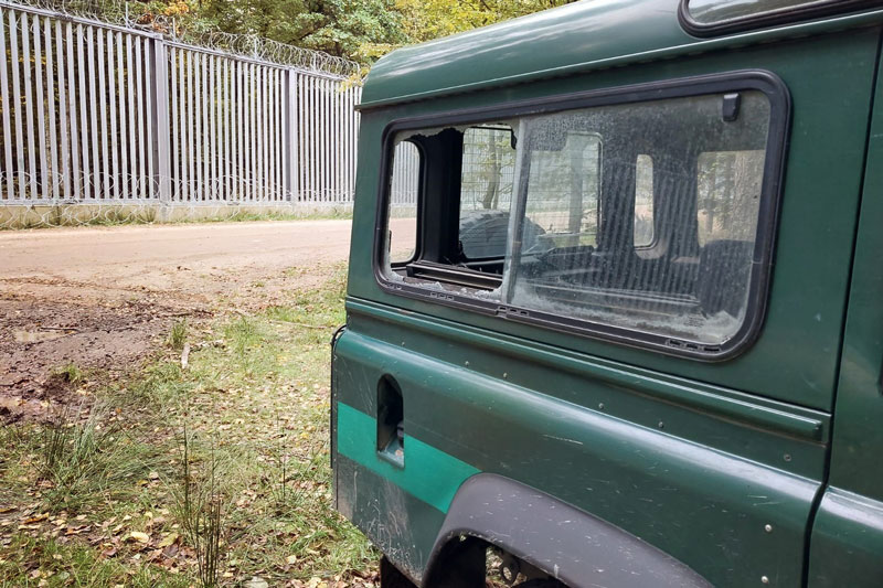 Dziś (19 października) około godziny 8:30, w rejonie ochranianym przez Placówkę SG w Białowieży, polski patrol został zaatakowany kamieniami i gałęziami. Podczas tego zdarzenia przebito na wylot 2 szyby w służbowym pojeździe przedmiotem lecącym z bardzo dużą prędkością. Nie ucierpiał żaden z funkcjonariuszy.