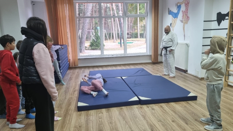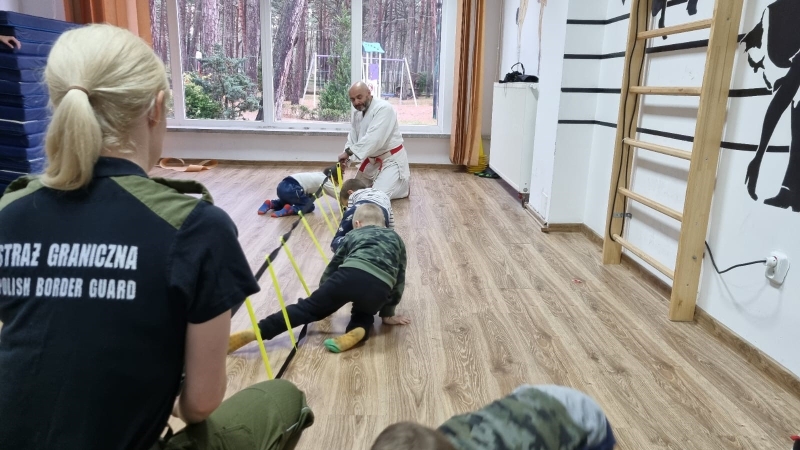 Kolejną edycję zajęć rozwojowo - integrujących dla podopiecznych z domów dziecka ewakuowanych z Ukrainy oraz dzieci funkcjonariuszy Państwowej Służby Granicznej Ukrainy poprowadzili: Doradca Komendanta Głównego SG ppor. Urszula Nowinowska oraz ekspert z zakresu sztuk walki z Wyższej Szkoły Straży Granicznej w Koszalinie ppor. SG Radosław Wiśniewski.