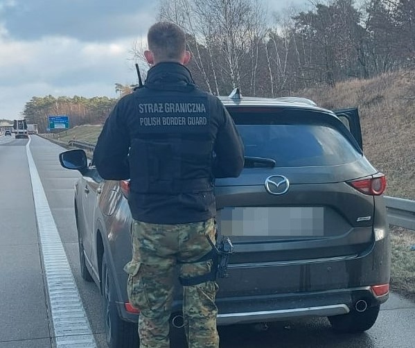 W czwartek (28 marca) funkcjonariusze SG ze Świecka, wykonując czynności służbowe w rejonie autostrady A2, wytypowali do kontroli drogowej jadącą od strony Niemiec osobową mazdę. Podczas kontroli wylegitymowano kierowcę pojazdu 35-letniego Polaka, który oświadczył, że nie posiada żadnych dokumentów do tego pojazdu, nie potrafił również wyjaśnić w jaki sposób wszedł w jego posiadanie. Przyznał jedynie, że mazdą miał przejechać z Niemiec do Polski. To od razu wzbudziło podejrzenia funkcjonariuszy, że pojazd może pochodzić z kradzieży. Mazda CX-5 miała założone niemieckie tablice rejestracyjne, które okazały się podrobione na wzór oryginalnych. Jak się okazało, zatrzymany przez funkcjonariuszy samochód został tydzień temu skradziony na terytorium Niemiec. 35-latka zatrzymano. Kierowca podejrzany o kradzież samochodu usłyszy prokuratorskie zarzuty. Szacunkowa wartość odzyskanego pojazdu (rocznik 2020), to 100 tys. złotych. Po zakończeniu czynności pojazd został zabezpieczony na parkingu strzeżonym.