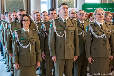 W trakcie uroczystości wręczono medale i odznaczenia funkcjonariuszom i pracownikom Straży Granicznej. Dzisiejsze wydarzenie uświetniło również wręczenie awansów na kolejne stopnie w korpusie oficerów, chorążych i podoficerów.