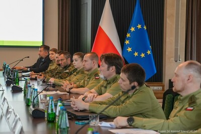 Delegacja odwiedziła Podlaski Oddział Straży Granicznej, gdzie powitali ją Zastępca Komendanta Głównego SG gen. bryg. SG Grzegorz Niemiec i Komendant Podlaskiego Oddziału SG gen. bryg. SG Sławomir Klekotka. Omówiono aktualną sytuację migracyjną na granicy polsko-białoruskiej, najlepsze praktyki w ochronie granicy państwowej i funkcjonowanie bariery fizycznej i elektronicznej.