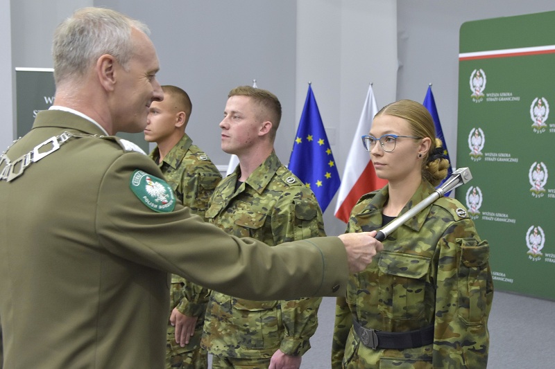 Nowo przyjęci studenci złożyli akt ślubowania na sztandar Wyższej Szkoły Straży Granicznej i pasowano ich berłem w poczet społeczności akademickiej.