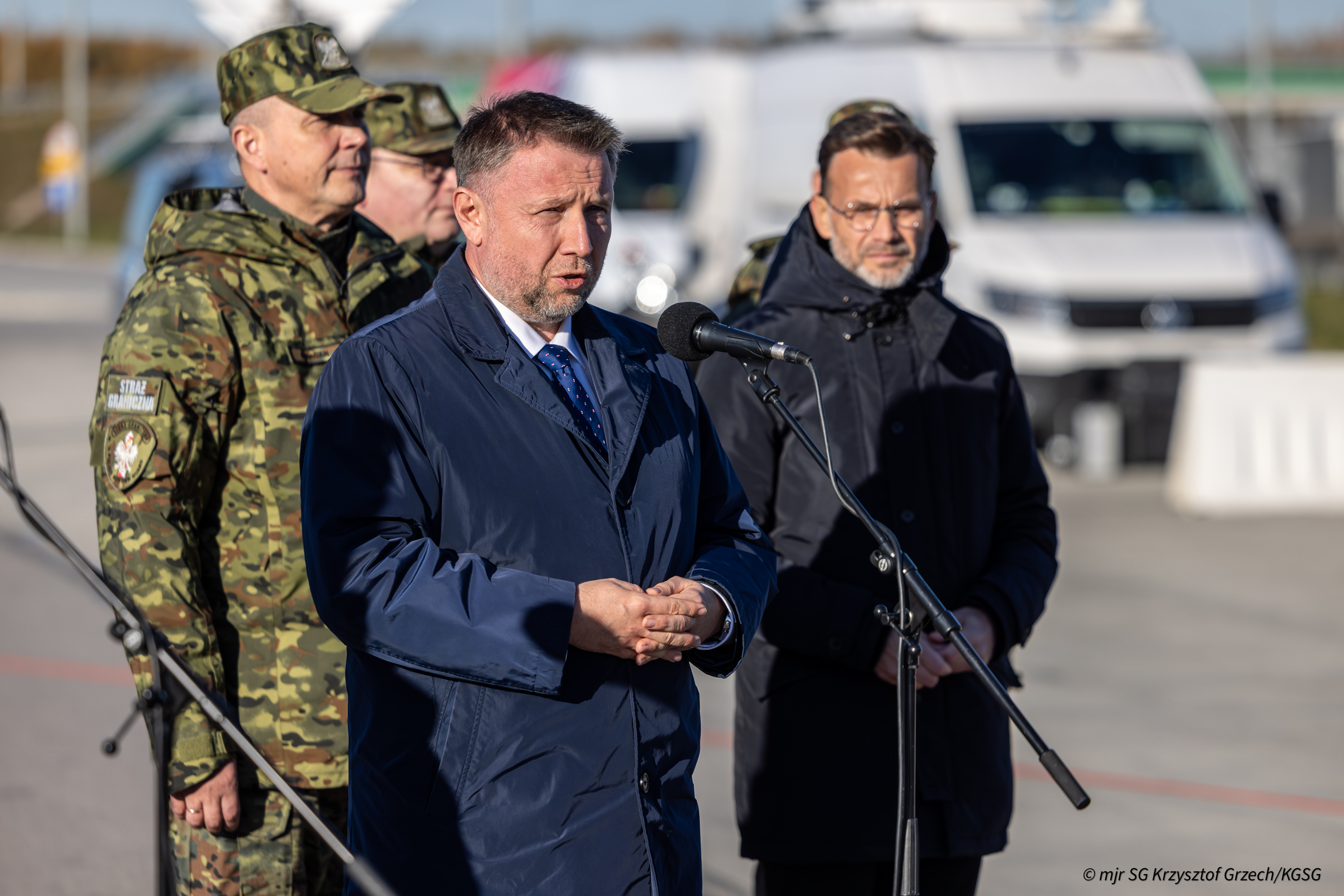 Szef Straży Granicznej uczestniczył również w briefingu prasowym Ministrów Spraw Wewnętrznych Polski i Litwy w Budzisku na polsko-litewskiej granicy. Tematem spotkania z dziennikarzami była współpraca Polski i Litwy w obszarze bezpieczeństwa. Podjęto temat ochrony granicy polsko-litewskiej, jej szczelności oraz skutecznych sposobów obrony zewnętrznych granic Unii Europejskiej.