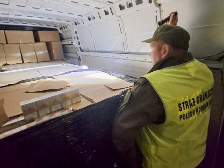 Funkcjonariusze z Placówki Straży Granicznej w Węgorzewie 5 listopada zatrzymali w powiecie szczycieńskim do kontroli drogowej pojazd marki Peugeot. Kierowcą był mieszkaniec powiatu mrągowskiego, który twierdził, że przewozi papier ścierny. Funkcjonariusze Straży Granicznej sprawdzili przestrzeń ładunkową auta i ujawnili nielegalne papierosy. Przeszukali również pomieszczenie mieszkalne należące do 52-latka, tam znaleźli kolejne wyroby tytoniowe bez polskich znaków skarbowych akcyzy. Łącznie zabezpieczono ponad 920 tys. sztuk papierosów pochodzących z nielegalnej produkcji.