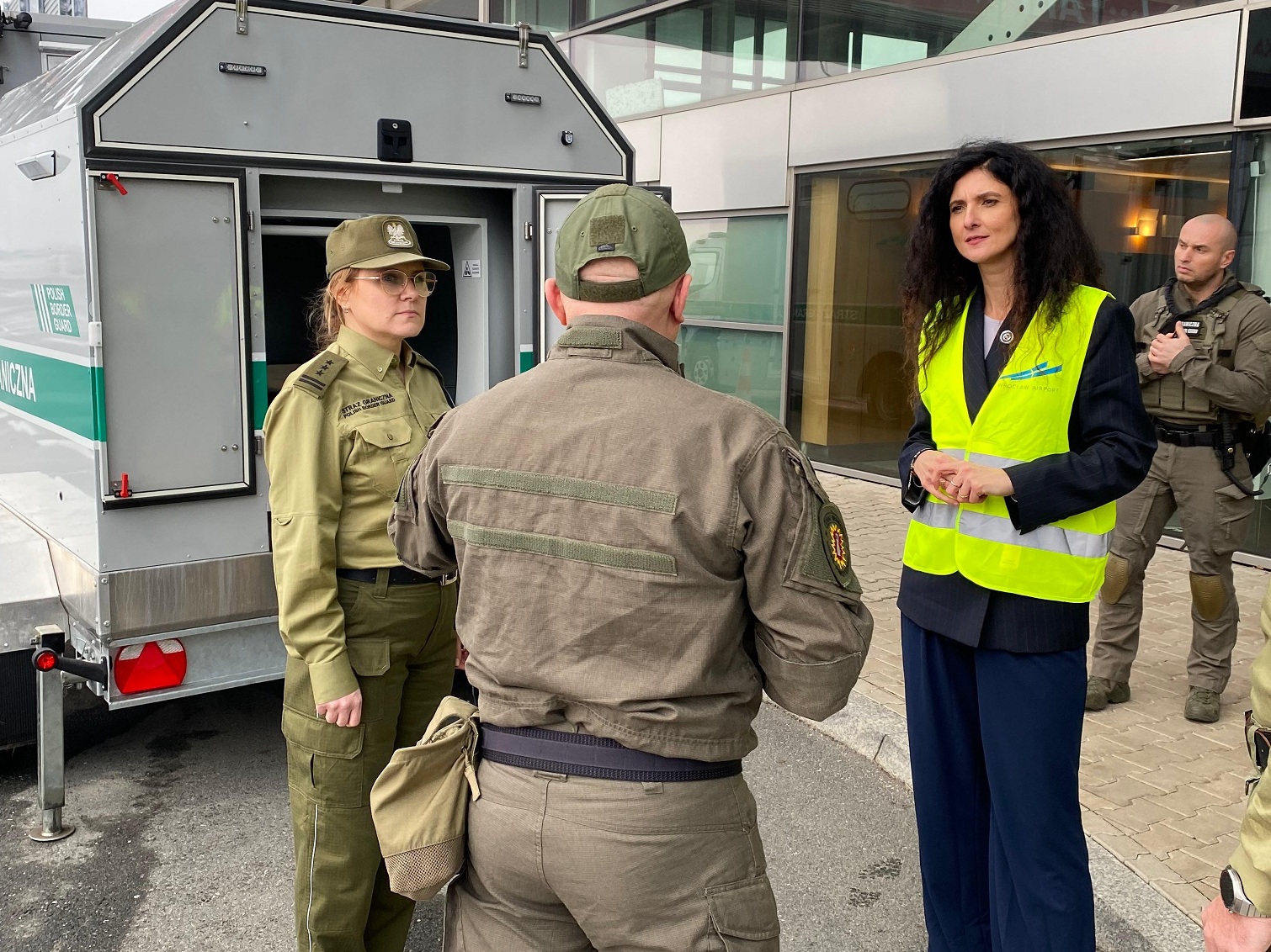 Płk SG Wioletta Kieliszak podziękowała za przekazany sprzęt, który zwiększy gotowość służb i wzmocni bezpieczeństwo wszystkich pasażerów, zarówno w terminalu, jak i w operacjach prowadzonych na terenie lotniska.