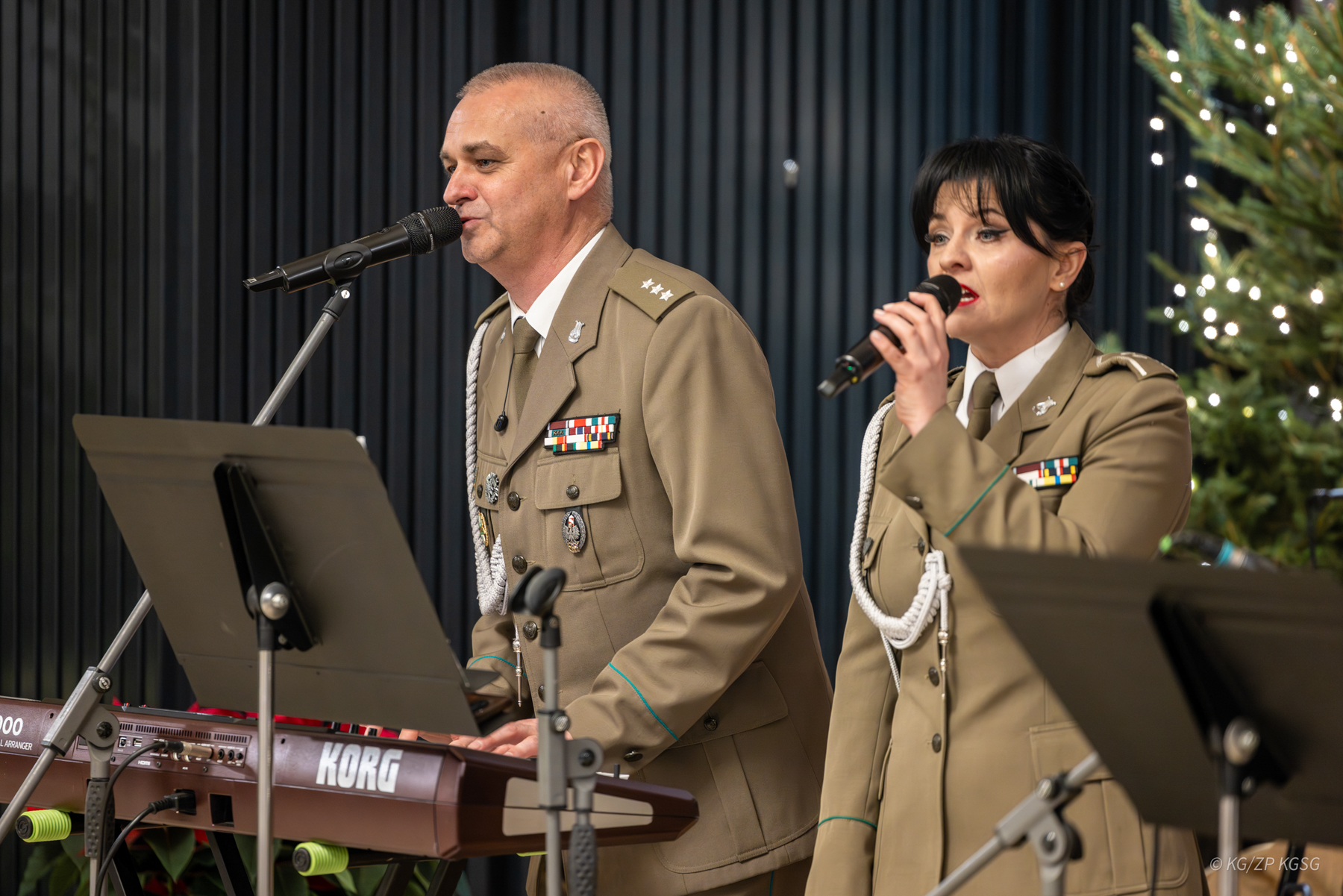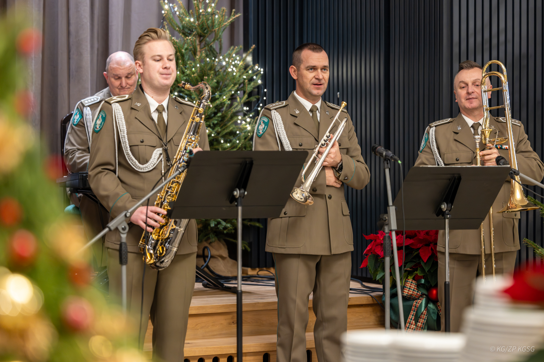 Na zakończenie uczestnicy spotkania przełamali się opłatkiem i złożyli sobie życzenia. Świąteczną oprawę muzyczną zapewnili muzycy z Zespołu Estradowego Orkiestry Reprezentacyjnej Straży Granicznej.