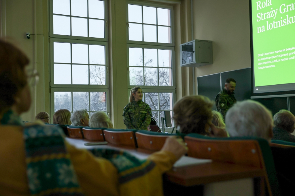 W czasie spotkań funkcjonariusze w przystępny i praktyczny sposób przybliżyli seniorom zagadnienia związane z bezpieczeństwem podróży, procedurami obowiązującymi na lotniskach oraz przebieg odprawy granicznej. Przedstawiono również rolę i zadania Straży Granicznej, jej strukturę organizacyjną oraz zakres odpowiedzialności w systemie bezpieczeństwa państwa.