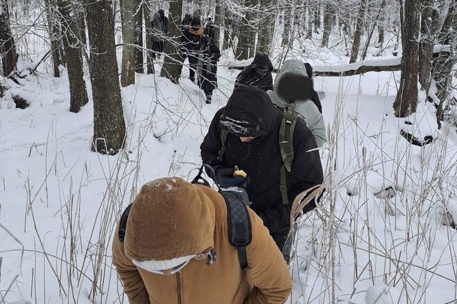W sobotę, 7 lutego br., funkcjonariusze z Placówki Straży Granicznej w Rutce-Tartak w okolicach miejscowości Sadzawki ujawnili 12 cudzoziemców. Jak ustalono w trakcie czynności to 2 obywateli Sudanu, 5 Bangladeszu, 3 Somalii, 1 obywatel Indii oraz 1 obywatel Mali. Posiadali przy sobie przepustki jednego z ośrodków dla cudzoziemców na Łotwie. Migranci zostali dowiezieni do granicy litewsko-polskiej przez kuriera. Nielegalnie przekroczyli granicę z Litwy do Polski pieszo. Następnie mieli zostać przewiezieni w głąb Europy przez kierowcę busa, który czekał na nich nieopodal miejsca ich ujawnienia. Kierowcą okazał się 31-letni obywatel Ukrainy. Kierowca otrzymał zobowiązanie do powrotu do kraju pochodzenia oraz zakaz wjazdu do Polski i państw Schengen na okres 10 lat. Mężczyzna dziś (9 lutego br.) decyzją sadu został tymczasowo aresztowany na 3 miesiące. Grozi mu do 8 lat więzienia.