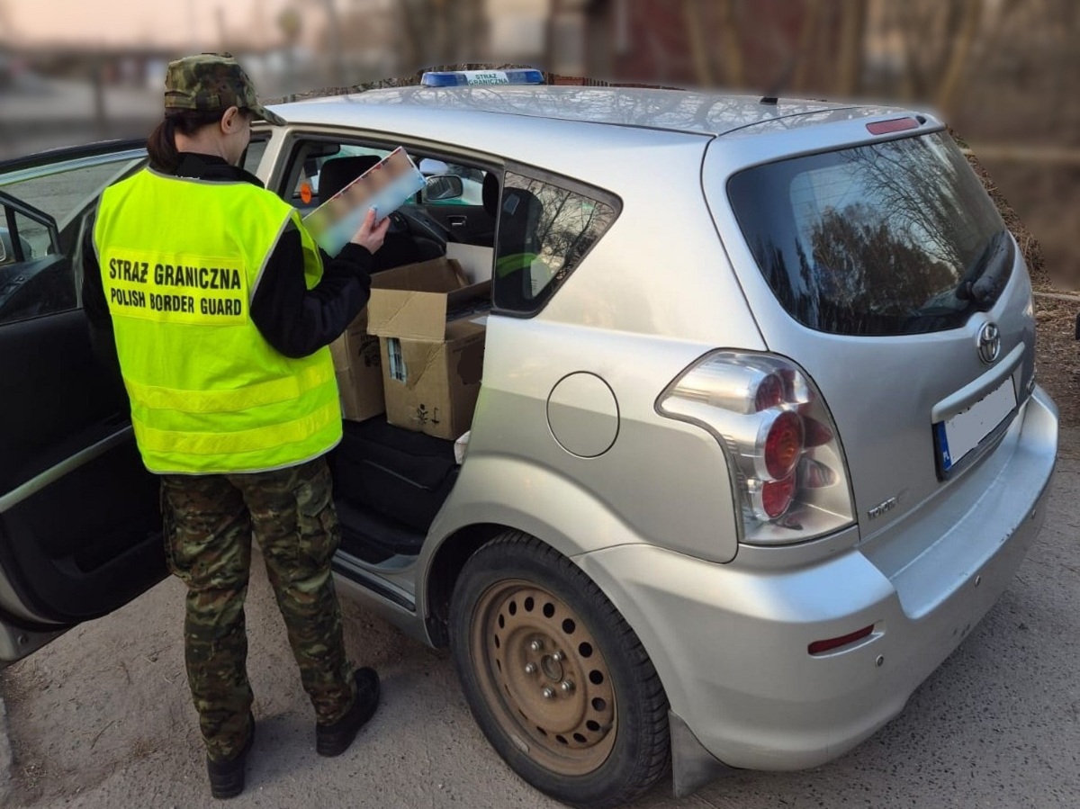 Ujawnienie nielegalnego towaru miało miejsce podczas kontroli drogowej w powiecie bialskim. Funkcjonariusze z Placówki Straży Granicznej w Sławatyczach zatrzymali samochód marki Toyota, którym podróżował 55–letni obywatel Polski. W trakcie czynności kontrolnych mundurowi ujawnili w przestrzeni bagażowej jego pojazdu, znaczne ilości papierosów bez polskich znaków akcyzy. W wyniku dalszych czynności służbowych, przeprowadzonych w miejscu zamieszkania mężczyzny, mundurowi odkryli kolejne nielegalne wyroby akcyzowe w postaci papierosów i alkoholu.