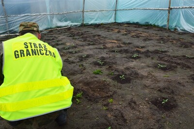 Zabezpieczono blisko 250 sadzonek roślin konopi indyjskich we wczesnej fazie wzrostu o wysokości od 7 do 10 cm. Ponadto, w znajdującym się obok tunelu foliowym, ujawniono ponad 300 kubeczków z wysianymi ziarnami tych roślin, z których część już kiełkowała. W znajdującym się na posesji budynku funkcjonariusze znaleźli także środki chemiczne, służące do uprawy i pielęgnacji roślin.