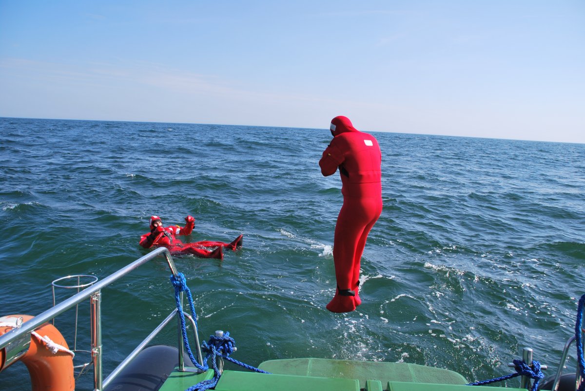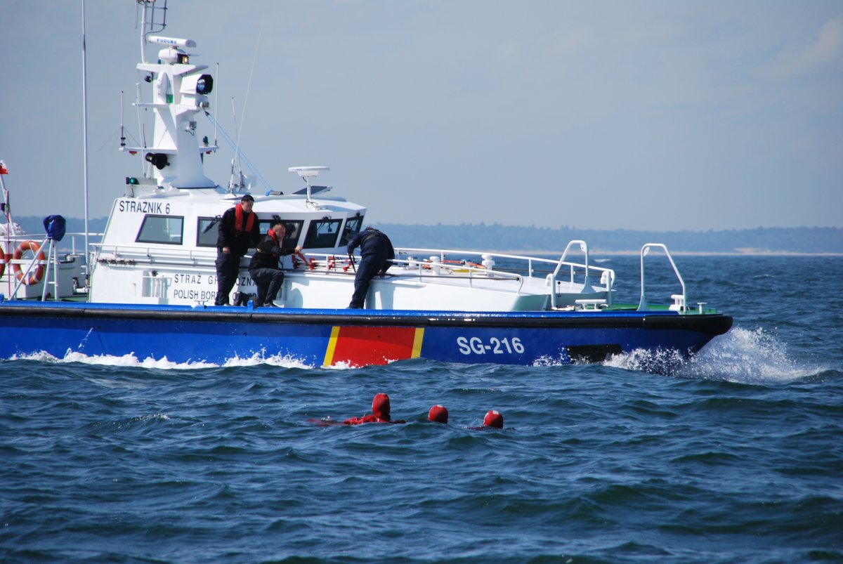Ważnym elementem szkolenia było ćwiczenie elementów z zakresu poszukiwania i ratowania życia na morzu. Na redzie portu Kołobrzeg, wspólnie z jednostkami pływającymi Policji oraz Portowej Ochotniczej Straży Pożarnej „TRYTON” w Kołobrzegu, zorganizowano ewakuację załogi uszkodzonego statku, w trakcie której przećwiczono postępowanie podczas rzeczywistej akcji poszukiwawczo–ratowniczej oraz podejmowania rozbitków z wody i udzielania im pierwszej pomocy.