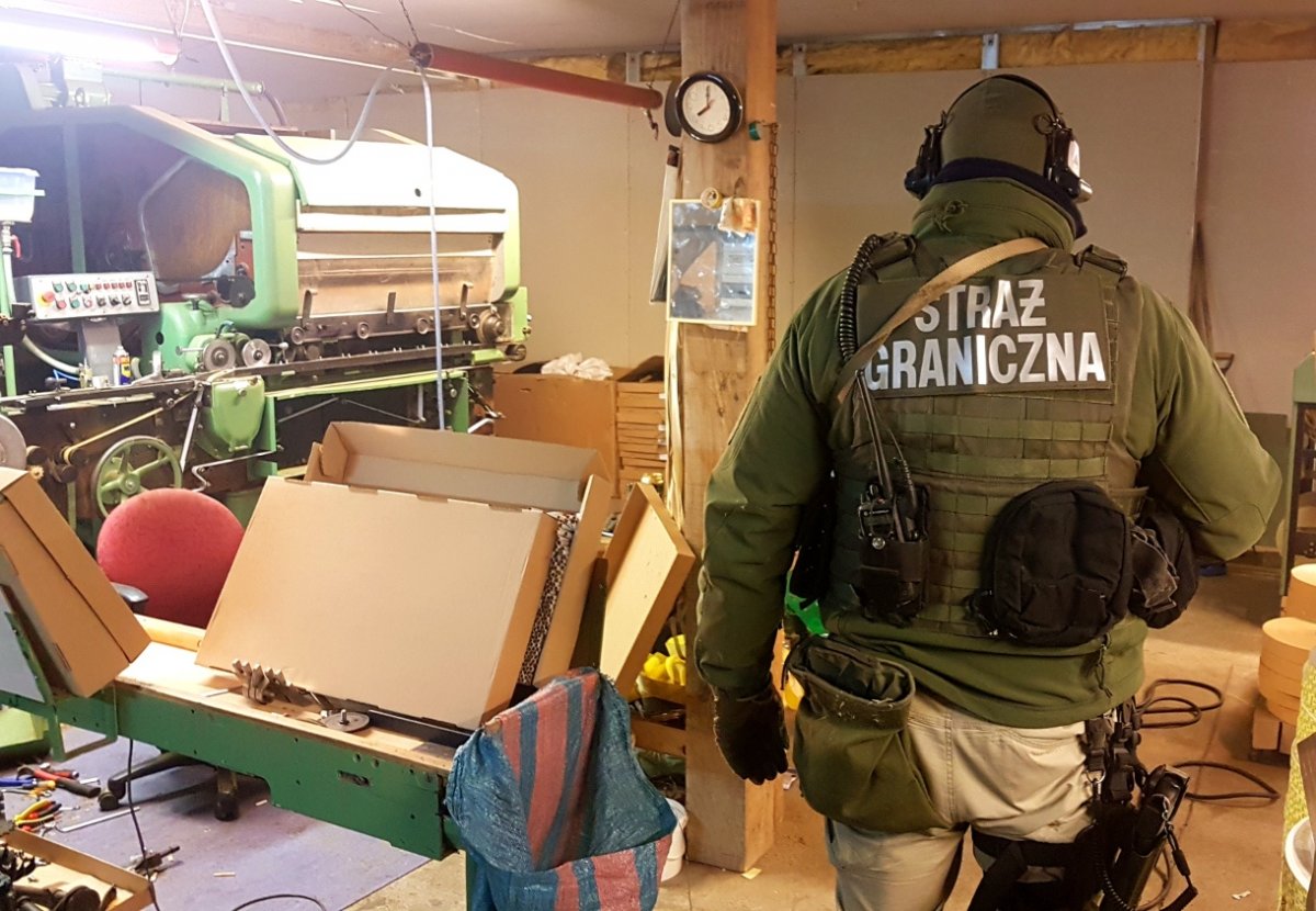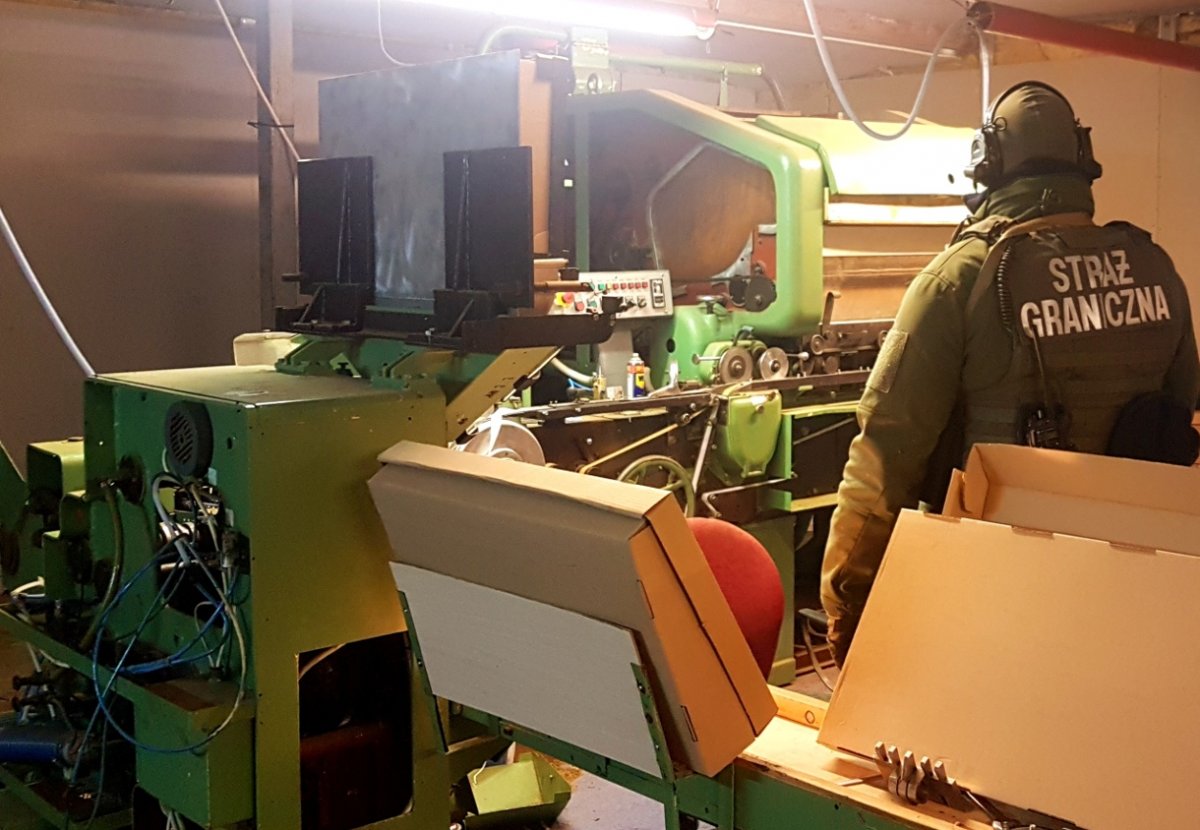Funkcjonariusze SG zabezpieczyli kompletną linię do produkcji wyrobów tytoniowych, a także agregat, krajankę i opakowania do papierosów. Według opinii sprowadzonego na miejsce biegłego, urządzenia o wartości około 900 tys. zł były w stanie produkować do 2 tysięcy papierosów na minutę. Funkcjonariusze ustalili, że wytworzony w ten sposób towar trafiał na rynki państw Europy Zachodniej.