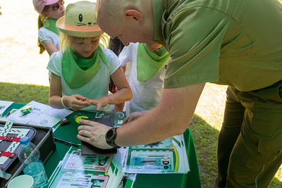 Młodzi goście Pary Prezydenckiej mogli odwiedzić stoisko promocyjne formacji, gdzie eksperci udzielali informacji z zakresu kryminalistyki, a także bezpiecznego przekraczania granicy. Ponadto każdy z uczestników pikniku miał okazję zobaczyć z bliska pojazdy i sprzęt służbowy funkcjonariuszy Straży Granicznej. Dużą atrakcją dla dzieci były pokazy umiejętności psów służbowych. Na najmłodszych czekały również: kącik plastyczny, gry, konkursy i zabawy. Dzieci mogły także otrzymać paszport pamiątkowy.